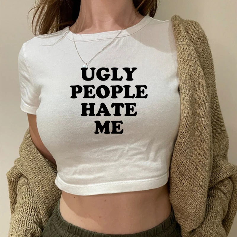 Ugly People Hate Me T-Shirt for Women Harajuku Sassy Women's Baby Tee Y2k 2000s Grunge Goth Clothes Funny Crop Top Dropshipping